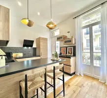 Апартаменты с ремонтом на третьем этаже буржуазного здания без лифта в 300-х метрах от набережной. Жилая площадь 66 m² - прихожая 2.5 m² с гардеробной, просторная гостиная 33.4 m² с открытой кухней и двумя балкончиками по 0.85 m², две спальни 7.7 и 11.6 m² с встроенными шкафами и общим балконом 3.1 m² на тихий внутренний двор, ванная комната с душевой + ванной, а также отдельный туалет. Качественная отделка, высокие потолки, кондиционеры во всех комнатах. Коммунальные платежи 170 €, годовой налог 1.128 €.