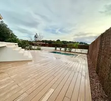Смежная только отремонтированная вилла недалеко от магазинов, автомагистрали и Sophia-Antipolis. Жилая площадь 85 m², прилегающий участок 400 m² с террасой и бассейном. На двух уровнях разместились гостиная 35.9 m² с открытой кухней и выходом на террасу 20 m², три спальни 8.3, 12.4 и 19 m², главная из которых со своей душевой комнатой и общая душевая с туалетом. Прилагается парковочное место, можно докупить второй паркинг. Коммунальные платежи 86 €.
