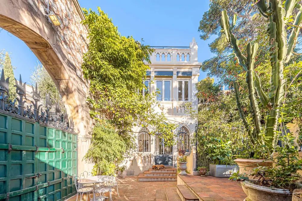 Со вкусом отремонтированная вилла в пешей доступности от центра города и Promenade des Anglais. Жилая площадь 161 m² + террасы и большой закрытый гараж. На нижнем уровне прихожая 10.3 m², двойная гостиная 29 m² с выходом на большую террасу, отдельная кухня 6.4 m², гостевой туалет, прачечная и несколько кладовых. Наверху разместились четыре спальни 8, 12.9, 13.2 и 13.5 m² (главная со своей ванной), две душевые комнаты с туалетами и лестница к панорамной террасе на крыше, где обновили плитку, установили джакузи. Годовой налог на имущество 2.441 €.