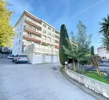 Апартаменты на третьем этаже закрытой резиденции в двух километрах от набережной и моря, сектор Bas Croix des Gardes. Жилая площадь 39.9 m² - гостиная-столовая 12 m², открытая кухня 4.6 m², спальня 9 m², кабинет/детская спальня 4.4 m², душевая 3.5 m² и туалет. Приличное состояние, есть кладовая и общий паркинг.