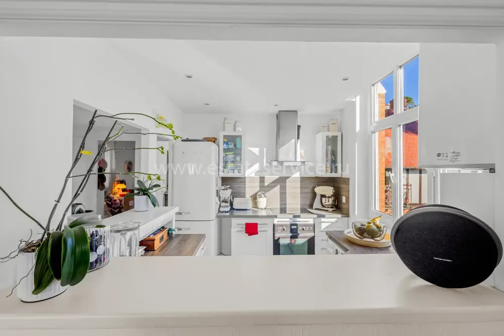Ухоженные апартаменты в очаровательной резиденции в 600-х метрах от моря. Общая площадь 165 m² (жилая 68.2 m²) - прихожая 5 m², гостиная 21.3 m² с камином и полу-открытой кухней 7.4 m², две спальни 9.3 и 14 m², ванная комната 4 m² с окном, отдельный туалет, две террасы 5 и 11 m², частный сад 80 m² - есть место под бассейн/джакузи. Прилагаются также гараж 17 m² ,два парковочных места и кладовая.