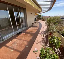 Квартира под обновление на верхнем (8-м) этаже резиденции с лифтом в двух минутах ходьбы от пляжа и основных удобств. Жилая площадь 115 m² - прихожая, гостиная 41 m², три спальни, отдельная кухня, две ванные комнаты, гостевой санузел, несколько гардеробных и две функциональные террасы общей площадью 154 m² по периметру квартиры. Включены кладовая, частная парковка и закрытый гараж, большой потенциал, всего 10 минут езды до Монако. Коммунальные платежи 667 €, годовой налог 1.930 €.
