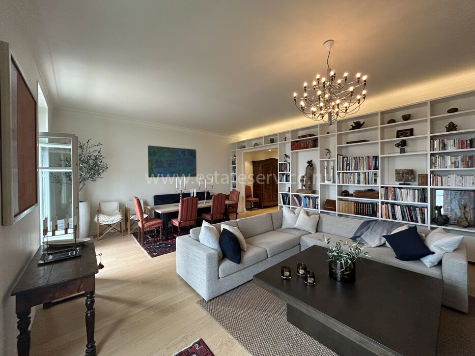 Солидные апартаменты с дизайнерским ремонтом на 4-м этаже резиденции с зелёной зоной и паркингом в нескольких шагах от моря. Жилая площадь 126 m² - прихожая 12.4 m², гостиная-столовая 42 m² с двумя балконами - прямой вид на парк и море, примыкающая кухня 7.5 m², две большие спальни 15 и 23 m² с душевыми комнатами, отдельный санузел и прачечная. Высокие потолки 3.5 метра, продаётся с мебелью и кладовой, можно купить с гаражом и/или паркингом. Коммунальные платежи 472 €, годовой налог 2.418 €.