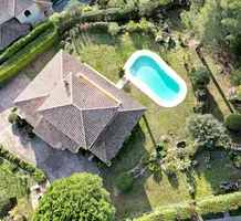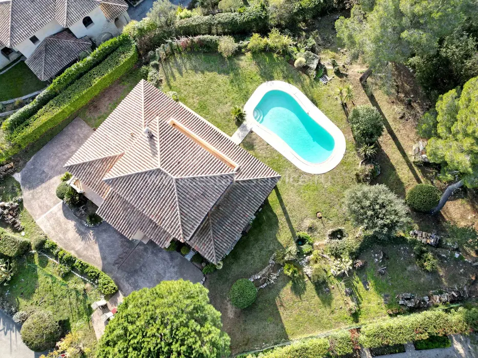 Тихая очаровательная вилла в небольшом закрытом поместье недалеко от центра Roquefort-les-Pins. Жилая площадь 192 m² + большой гараж и подвал, участок земли 1.917 m² с ландшафтным садом, автополивом, паркингом и бассейном. На первом уровне - прихожая с гостевым туалетом, большая гостиная 32.2 m² с камином, обеденная зона 16.5 m², отдельная кухня 11.8 m² с примыкающей прачечной, две спальни с душевыми/туалетами, главная из которых имеет гардеробную, а также большой кабинет 16.2 m². Наверху разместились ещё три спальни (две имеют смежный балкон), ванная комната и отдельный туалет. Годовой налог 2.465 €.