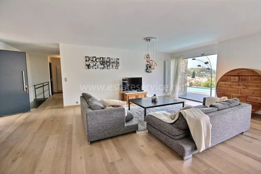 Дизайнерская вилла с тихим и удобным расположением в нескольких минутах ходьбы от магазинов и деревни. Общая площадь 250 m² (жилая 175 m²), прилегающий участок земли 850 m². На первом уровне - прихожая, большая гостиная с открытой кухней островного типа и выходом на террасу, две красивые спальни с душевыми комнатами, прачечная и гостевой туалет. Наверху разместилась главная спальня более 35 m² с большой гардеробной и ванной комнатой с душевой кабиной. Большой функциональный подвал 85 m², кладовая, гараж на три машины, двойной паркинг. Годовой налог 1.700 €.