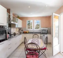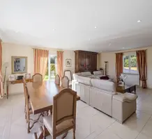 Современный дом 2008 года постройки в центре небольшого кондоминиума с видеонаблюдением в Биоте. Жилая площадь 220 m², на участке 1.306 m² ландшафтный сад из средиземноморских растений, закрываемый бассейн, площадка для петанка, двойной гараж и несколько парковочных мест. На основном уровне - большая гостиная, отдельная кухня, четыре спальни, прачечная и терраса с видом на долину. На этаже бассейна есть также отдельные двухкомнатные апартаменты - гостиная, кухня, спальня и ванная комната. Практически идеальное состояние, установлены солнечные батареи, система автоматизации, терминал для электромобиля. Ежемесячные платежи 50 €.