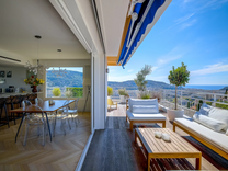 Семейная квартира на верхнем этаже закрытой резиденции с лифтом и консьержем в секторе Croix-Rouge. Общая площадь 64.2 m² (жилая 55.7 m²) - прихожая 4 m², гардеробная, полу-открытая застеклённая кухня 6.6 m², гостиная 16.8 m² с балконом 4.3 m² - есть проблеск моря, две спальни 8.3 и 10.1 m², душевая комната с окном, отдельный туалет и лоджия 4.1 m². Современный ремонт, реверсивный кондиционер, двойные стеклопакеты, электрические рольставни, кладовая и частный паркинг, общие парковочные места, рядом школа и колледж. Коммунальные платежи 200 €.