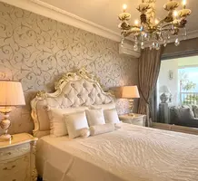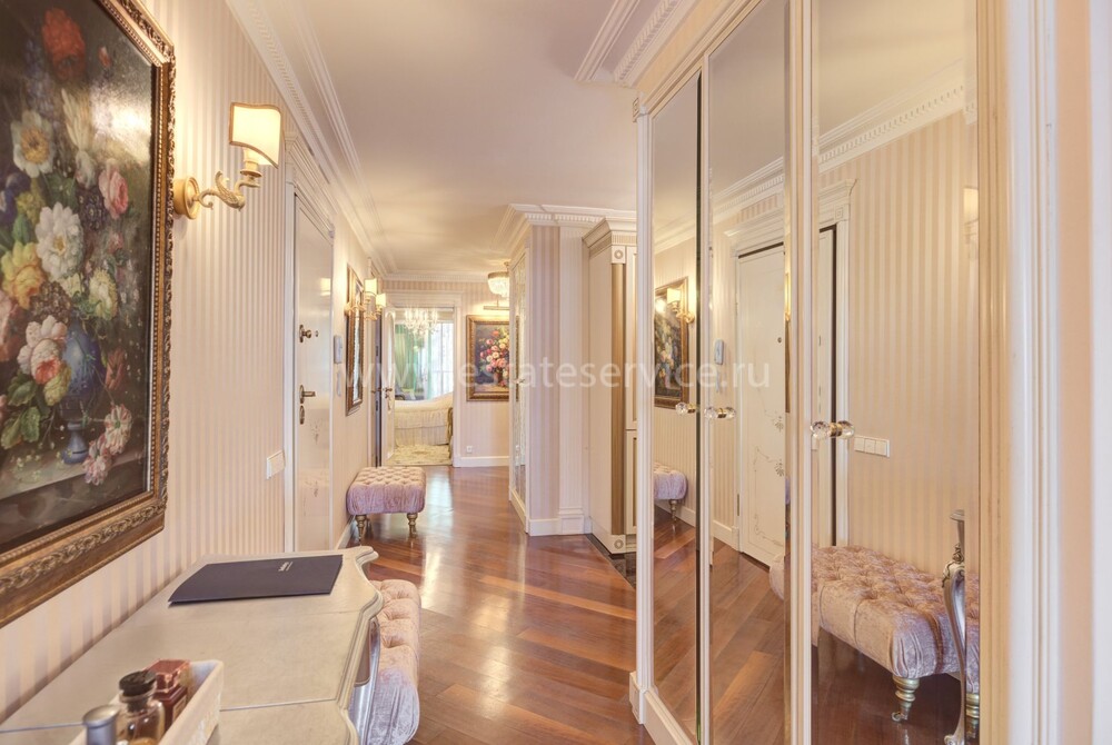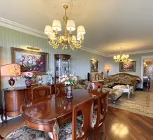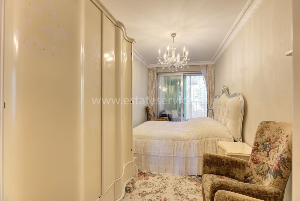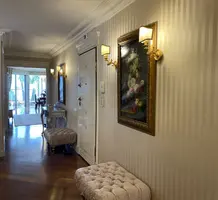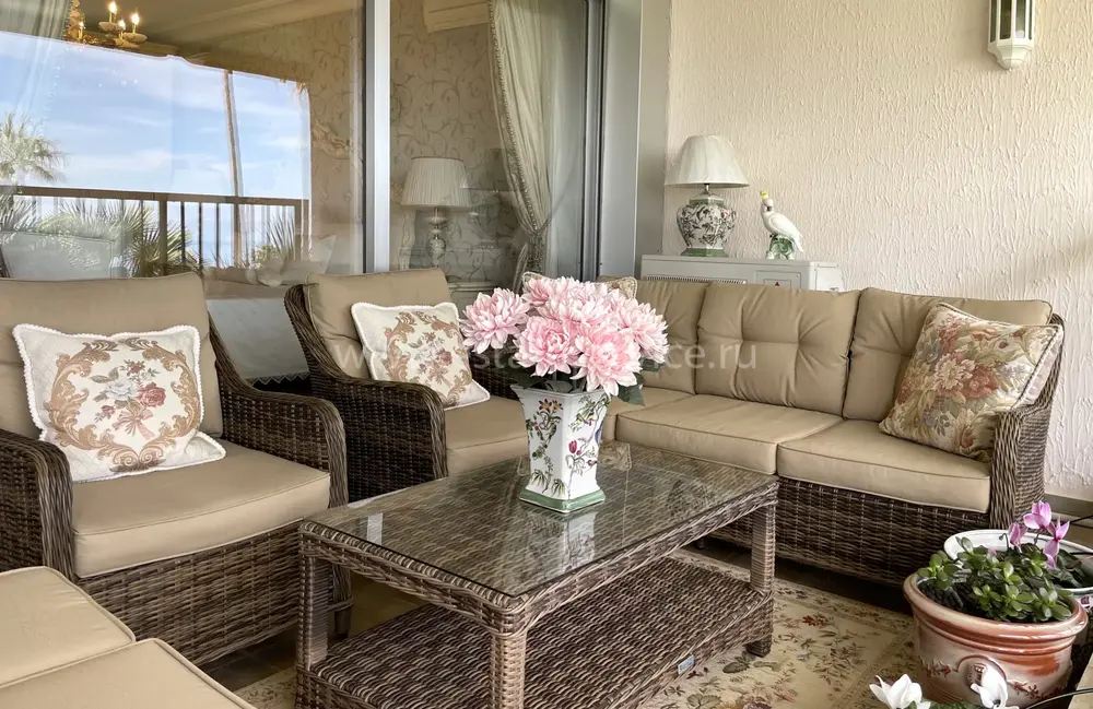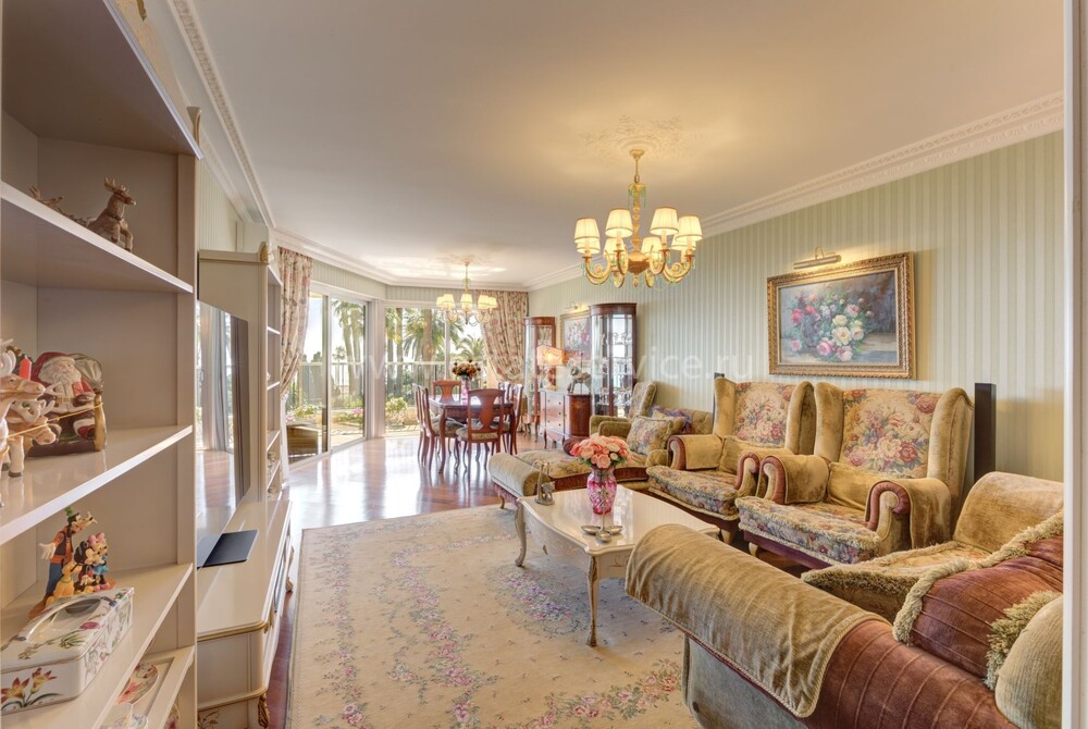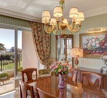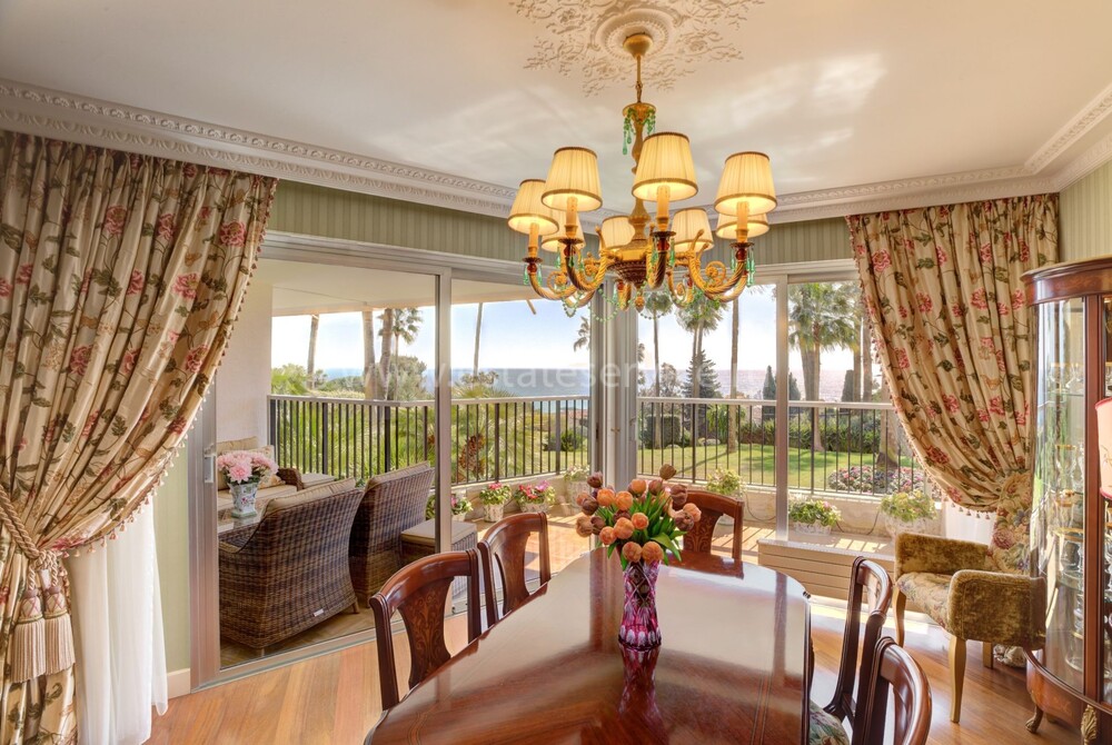 Элегантные апартаменты в закрытом кондоминиуме с круглосуточным консьержем, видеонаблюдением, двумя бассейнами, детской площадкой, шикарным парком 15 Га и теннисными кортами. Общая площадь 141 m² (жилая 114.5 m²) - прихожая, гостиная 31.8 m², отдельная кухня 27.5 m², три спальни 10.3, 15 и 15.8 m², главная с гардеробной и ванной комнатой, широкая терраса 15.9 m² с видом на море, крытая веранда 10.5 m², общая душевая комната и отдельный санузел. Отличное состояние, включены мебель, двойной гараж 34.5 m² и кладовая. На территории гостевая парковка для посетителей, курсирует микроавтобус до центра Канн, приятный вид от островов Lerins до Кап д'Антиб. Коммунальные платежи 665 €, годовой налог 2.320 €.