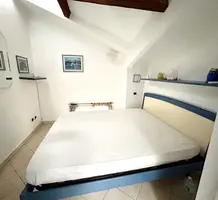Двухуровневая квартира на втором этаже небольшого кондоминиума рядом с центром города. Общая площадь 65 m² - прихожая, гостиная с встроенной кухней и террасой, спальня с балкончиком и душевая с туалетом. Наверху по лестнице разместились ещё одна спальня и вторая душевая с туалетом.