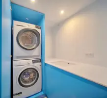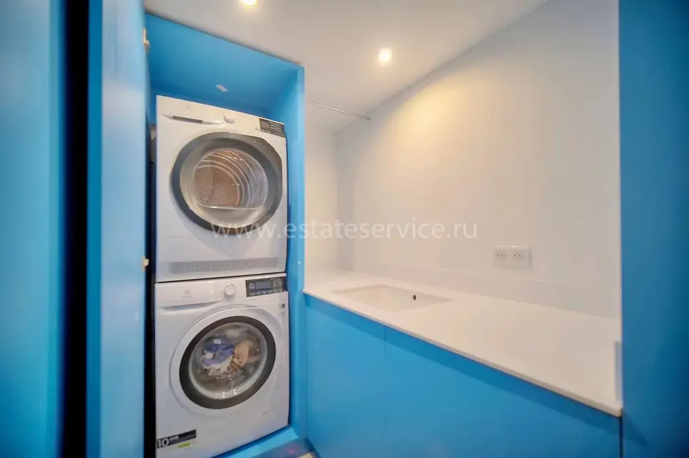 Двухуровневые апартаменты на верхнем этаже элегантного кондоминиума с лифтом, зелёной зоной и бассейном. Общая площадь 178 m² (жилая 151 m²) - прихожая, двойная гостиная-столовая с открытой островной кухней, выходом на террасу 20 m² и мезонином, четыре спальни, три ванные/душевые комнаты с туалетами и прачечная. Свежий ремонт, включены два закрытых гаража и кладовая в подвале. Ежемесячные платежи 550 €, годовой налог 2.300 €.