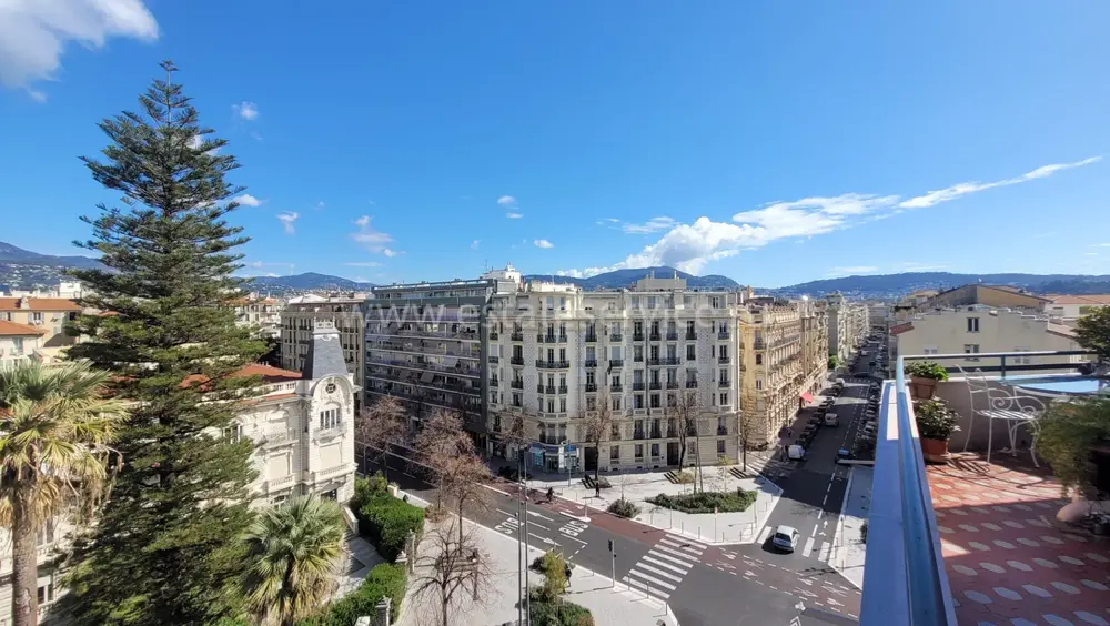 Квартира на верхнем (7-м) этаже элегантного здания Art déco с лифтом на Place Franklin - удобная зона в 10-ти минутах от Английской набережной. Общая площадь 88.4 m² (жилая 75.25 m² ) - прихожая 12.5 m² с большим встроенными шкафом, светлая гостиная 31 m² с камином и выходом на террасу 13.2 m², отдельная кухня 8.85 m², тихая спальня 15.8 m² с балконом, ванная комната 5.5 m² и отдельный туалет. Высокие потолки, установлен кондиционер, можно сделать вторую спальню, кладовая. Коммунальные платежи 200 €, годовой налог 1.454 €.