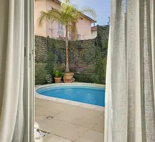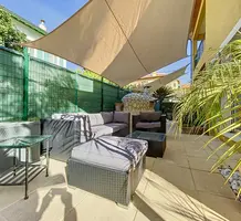 Тихая ухоженная вилла 2000 года постройки недалеко от магазинов, трамвайной линии, Английской набережной и моря. Жилая площадь 145 m², на первом уровне прихожая 11.2 m², двойная гостиная-столовая 40 m², отдельная кухня 11.9 m² и туалет. На втором разместились четыре спальни 10, 17, 17.9 и 19.6 m², главная из которых - с душевой/туалетом, ванная комната, отдельный санузел и лоджия. На территории небольшой частный сад, терраса с бассейном, летняя кухня и гараж. Качественная отделка: кондиционеры, двойные стеклопакеты, электрические рольставни, сигнализация, бассейн с подогревом, электрические ворота. Годовой налог на имущество 2.760 €.
