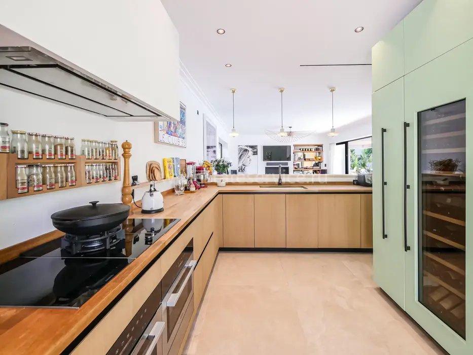 Со вкусом отремонтированная вилла в трёх минутах от набережной, порта и моря. Жилая площадь 140 m² + гараж 16.5 m² и бунгало 20 m², которое можно переделать в гостевую студию. В доме - холл 7.5 m², светлая и просторная гостиная-столовая с большими окнами и выходом к бассейну (есть детский отсек) с видом на море, дизайнерская кухня high tech открытой планировки с выходом на летнюю террасу, две спальни 8.5 и 14.6 m², душевая комната, санузел, подсобное помещение 10.5 m² и отдельные апартаменты 31.5 m² на уровне сада со своей душевой комнатой. На участке 552 m² несколько ландшафтных зон, открытый душ, летняя гостиная с кухней и небольшой огород. Годовой налог 3.173 €.