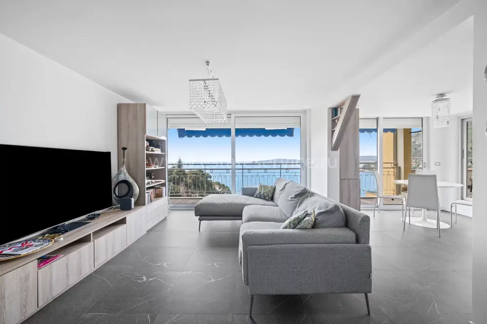 Апартаменты на седьмом этаже резиденции с садом и консьержем поблизости от Plage de la Mala и пешеходной дорожки в Монако. Общая площадь 180 m² (жилая 90 m²) - прихожая с гардеробной, просторная гостиная, зона столовой с открытой кухней и главная спальня (имеет свою ванную комнату с душем, туалетом и биде) выходят на угловую террасу с джакузи, ещё две спальни с душевой и отдельный санузел. Качественные материалы и отделка, прилагается закрытый гараж. Коммунальные платежи 180 €, годовой налог 1.700 €.