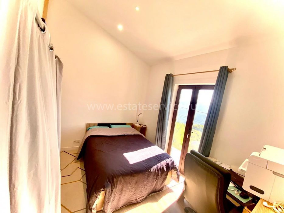 Небольшая вилла с шикарной панорамой на горы в 45-ти минутах езды от побережья и аэропорта Ниццы. Общая площадь 160 m² (жилая 80 m² + 80 m² подвал-гараж), прилегающий участок земли 1.500 m² - есть паркинг на пять автомобилей, аккуратный садик, место под бассейн. В доме - гостиная 38 m² с открытой кухней и камином, три спальни 9, 10 и 10.6 m², душевая 4.8 m² с двойной раковиной, отдельный туалет и две террасы.