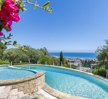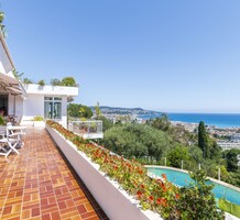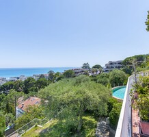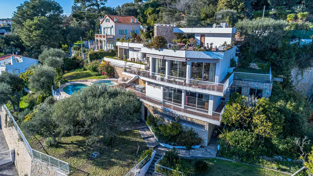Дизайнерская вилла в закрытом домене (всего на 10 соседей) с удобным доступом к центру и морю. Общая площадь 517 m², жилая часть 396 m² на трёх уровнях включает 9 комнат, есть домик для смотрящего/персонала, два гаража 31.9 и 75.6 m². Террасный участок земли 1.507 m² с панорамным бассейном (имеется детский отсек) и садом из средиземноморских растений. Есть также прилегающий участок 2.560 m² - подходит для теннисного корта или небольшого домика. Нижняя часть здания нуждается в обновлении - хороший потенциал! Годовой налог на имущество 5.181 €.