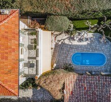 Элегантный особняк с редким и удобным расположением возле школы, магазинов и всей необходимой инфраструктуры. Общая площадь 211 m² (жилая 195 m²), на первом уровне прихожая, отдельная кухня 13 m², двойная гостиная-столовая 45 m² с выходом в сад и к гостевому домику 35 m² у бассейна с подогревом. На втором этаже две спальни, ванная комната и главная спальня с душевой и гардеробной, все выходят на общую террасу. На уровне сада разместились ещё две спальни, одна из которых с отдельным входом, ванная комната с туалетом, душевая, отдельный санузел, кабинет, прачечная и подвал. Годовой налог 2.840 €.