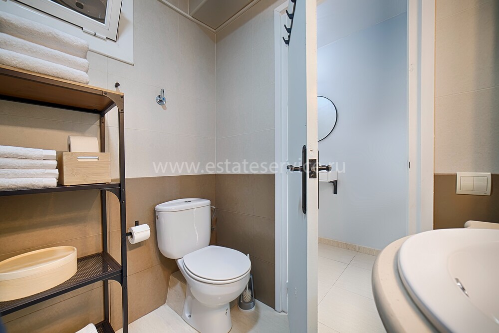 Современные апартаменты с удобным расположением в нескольких шагах от пляжа и основных удобств. Площадь квартиры 52 m² - прихожая, душевая с туалетом, гостиная с выходом на большую террасу - есть проблеск моря, спальная зона с двуспальной кроватью и удобная кухня с окном. Отличное состояние, хороший арендный потенциал, здание с лифтом, кондиционер, отопление.