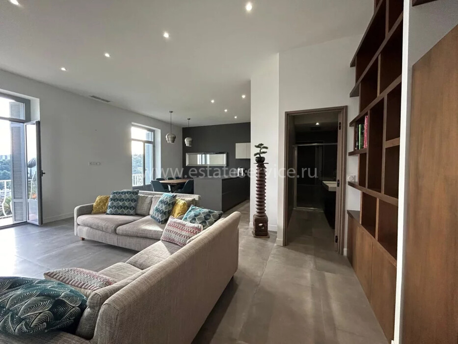 Квартира с дизайнерской отделкой в закрытом буржуазном кондоминиуме с лифтом и парком в километре от моря и Казино. Площадь квартиры 80.3 m² прихожая с гардеробной, просторная гостиная с высоким потолком, открытой кухней и двумя балконами с видом на море, две спальни с балконами, ванная и душевая комнаты с туалетами. Шикарные материалы, кладовая, частный паркинг. Коммунальные платежи 290 €.