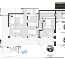 Вилла на завершающейся стадии работ в тихом закрытом поместье из трёх новых домов. Жилая площадь 240 m² + террасы 150 m² и двойной гараж 39 m², на прилегающем участке 2.000 m² благоустроят ландшафтный сад, есть зона отдыха с бассейном 51 m², парковка на несколько автомобилей. На верхнем уровне просторная гостиная с открытой кухней, выходящая на большую террасу с морской панорамой, главная спальня с гардеробной и душевой (душевая, ванная, двойная раковина и туалет) комнатой. По лестнице ниже разместились три спальни с ванными/душевыми комнатами, каждая со своей гардеробной. Шикарная отделка и материалы, близость основных удобств, лёгкий доступ к Монако.