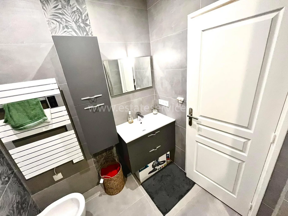 Апартаменты с ремонтом на 3-м этаже престижной резиденции в 70-ти метрах от Набережной и пляжа. Площадь квартиры 52 m² - прихожая с гардеробной, двойная гостиная с встроенной кухней и спальня выходят на террасу 11 m² - боковой вид на море, стильная душевая комната с подвесным туалетом. Отличное состояние, есть кладовая, можно купить с мебелью. Годовой налог на имущество 800 €.