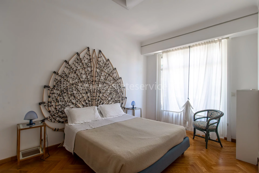 Апартаменты на пятом этаже красивого кондоминиума с небольшой территорией и консьержем по Бульвару Виктора Гюго - удобная зона возле Carré d'Or, проспекта Жана Медсана и 600-х метрах от моря. Жилая площадь 91 m² - прихожая 7 m², эркерная гостиная 36 m² с пятью окнами, отдельная кухня 7 m², две большие спальни 15 и 15.6 m² со шкафами - все комнаты выходят на угловую террасу 25.7 m² по периметру квартиры, ванная комната 4.6 m² и отдельный туалет. Хорошее состояние, реверсивное кондиционирование во всех комнатах, электрические жалюзи, есть две кладовые. Прямо перед зданием остановка подземного трамвая, что позволяет добраться до аэропорта за несколько минут. Коммунальные платежи 196 €, годовой налог 1.553 €.