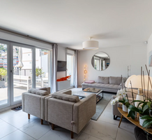 Квартира на верхнем (7-м) этаже современной резиденции 2019 года постройки в 1.2 км от набережной и моря. Общая площадь 130 m² (жилая 92 m²) - прихожая с гардеробной, гостиная-столовая 36 m² с западной террасой 30.4 m² - приятный вид на Собор, полу-открытая кухня 7.6 m², две спальни 9.3 и 15.2 m² со своими душевыми/туалетами и террасой 8.1 m², главная также с гардеробной, отдельный санузел и прачечная. Отличное состояние, десятилетняя гарантия застройщика, включён гараж 26.7 m² на две машины с доступом на лифте. Коммунальные платежи 330 €, годовой налог 2.030 €.