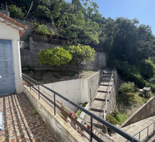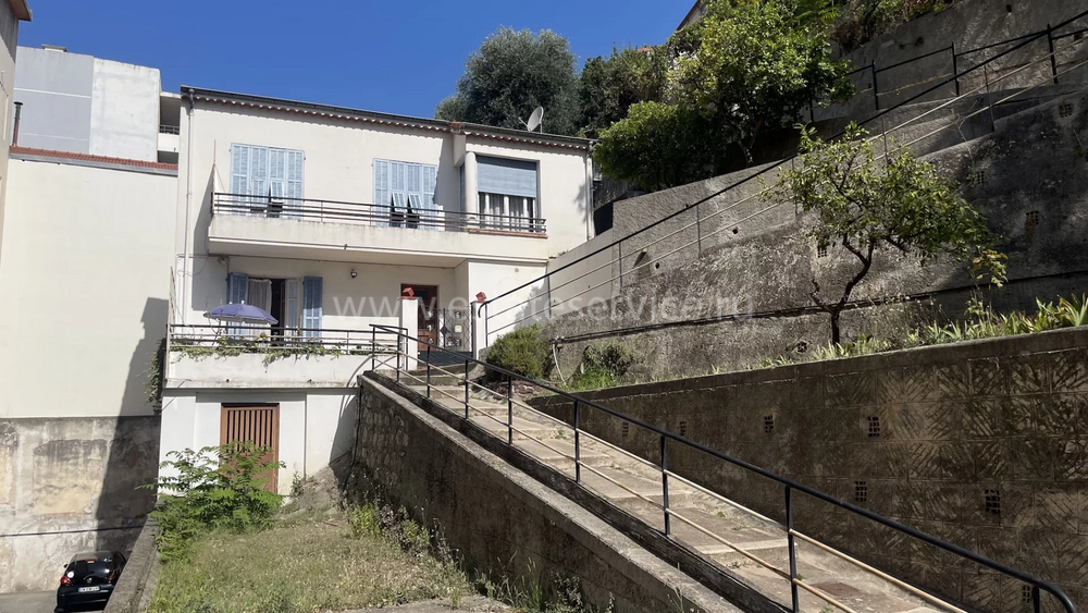 Небольшая вилла под реставрацию в 500-х метрах от моря и 10-ти минутах от центра. Общая площадь 120 m² (жилая 84.5 m²), есть гараж 20 m², сад 100 m², подвал 30 m². На нижнем уровне прихожая 7.6 m², гостиная-столовая 18.7 m² с камином, отдельная кухня 7.6 m², санузел и терраса 30 m². Наверху разместились три спальни 10, 12.5 и 14.2 m² с балконом 10 m², ванная комната с туалетом. Годовой налог 1.000 €.
