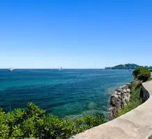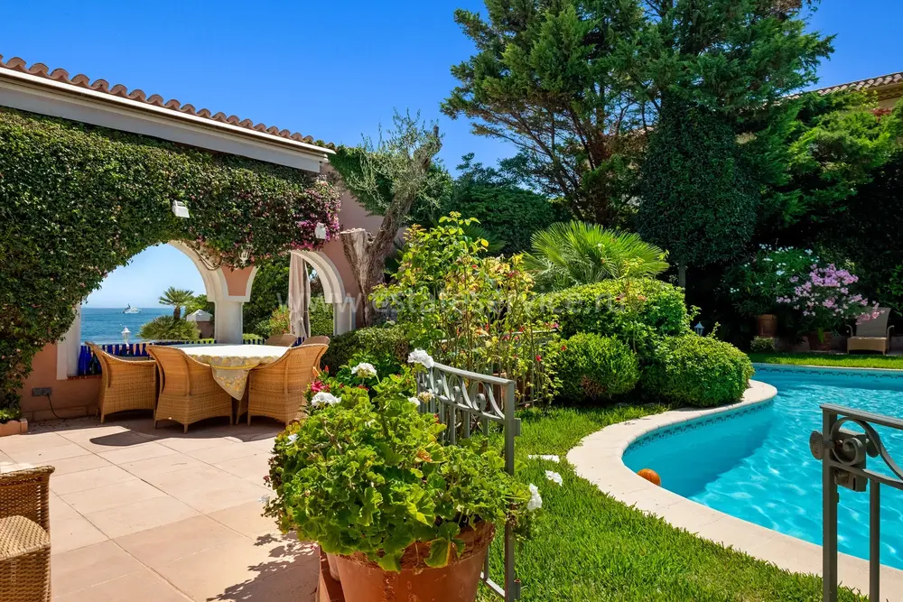 Ухоженный особняк с редким и престижным расположением в нескольких метрах (есть спуск по лестнице, подходит для купания) от моря. Жилая площадь 150 m² + гараж и кладовая, довольно ровный участок 813 m² с пышным садом, террасой и зоной отдыха с бассейном. В доме - прихожая, просторная гостиная-столовая с очаровательным камином и видом на море, отдельная кухня с выходом в сад, три спальни наверху, ванная комната, душевая и гостевая спальня на нижнем уровне с собственной душевой.