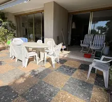 Апартаменты в закрытой безопасной резиденции с консьержем, парковой зоной и удобным доступом к морю. Жилая площадь 102 m² - прихожая, гостиная 34 m² с морской панорамой и выходом на уютную террасу огороженную садом, отдельная кухня 11.5 m² с подсобкой-кладовой, две большие спальни 14 и 16.9 m² с встроенными шкафами, ванная комната с туалетом, душевая и отдельный санузел. Хороший потенциал, включены подвал и парковочное место, всё рядом. Коммунальные платежи 450 €, годовой налог 1.600 €.