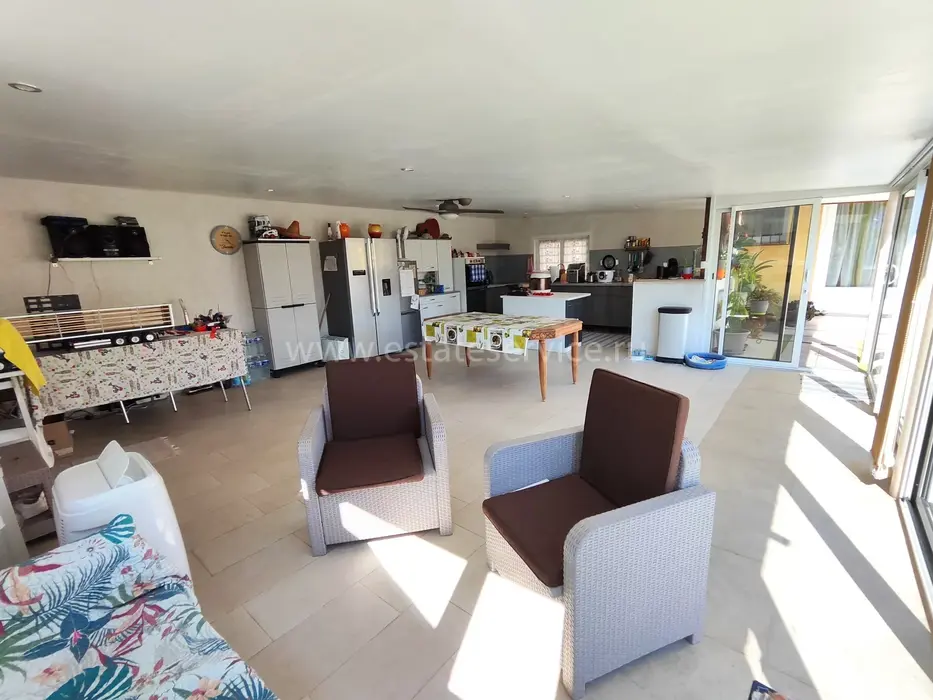Загородная вилла недалеко от школ, детского сада, 3-4-х минут езды от Торгового центра Nice Valley и 15-ти минутах ходьбы от трамвайной линии. Общая площадь дома 192 m² (жилая 186 m²), на ровном участке 2.263 m² также пристройка 30 m² (2-хкомнатная квартира с кухней), крытая летняя кухня-гостиная 60 m² возле бассейна, большая мастерская 60 m², два закрытых гаража и несколько парковочных мест. На первом этаже гостиная с камином, полу-открытая кухня, главная спальня с прилегающей ванной комнатой, отдельный туалет и пристройка 20 m² где оборудованы прачечная, гардеробная и кладовая. Наверху разместились две большие спальни, каждая со своей террасой (одна на запад, другая с видом на юг, третья спальня, душевая и отдельный туалет. Хорошее состояние, двойные стеклопакеты во всех комнатах, кондиционер, тепловой насос, качественная изоляция, гарантирующая чрезвычайно низкое потребление электроэнергии. Расстояние до побережья и аэропорта 7 километров. Годовой налог на имущество 2.032 €.
