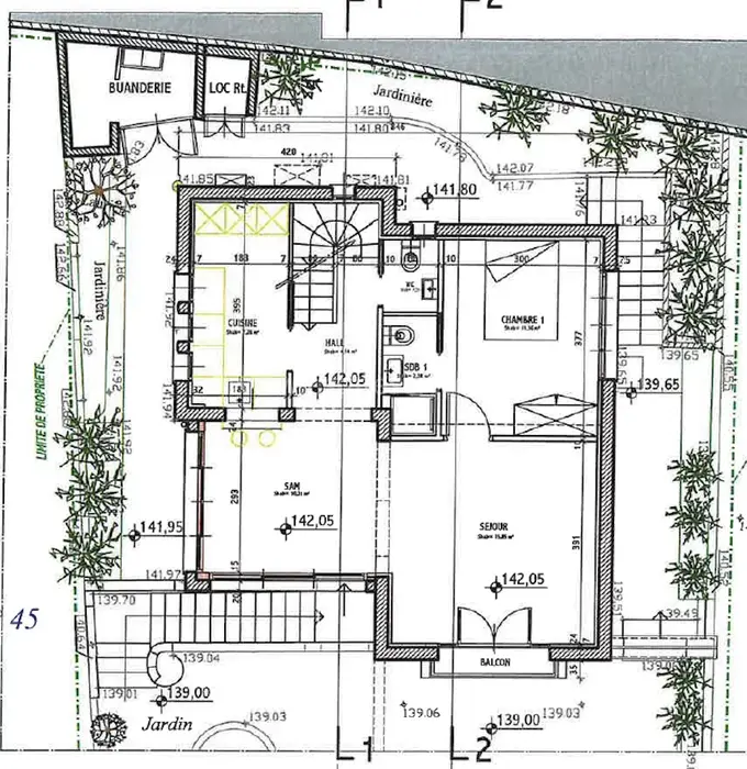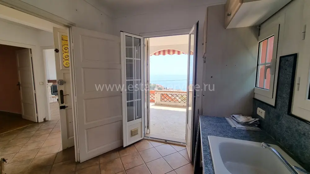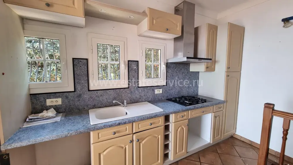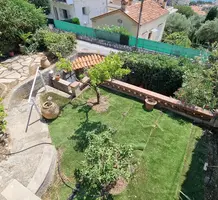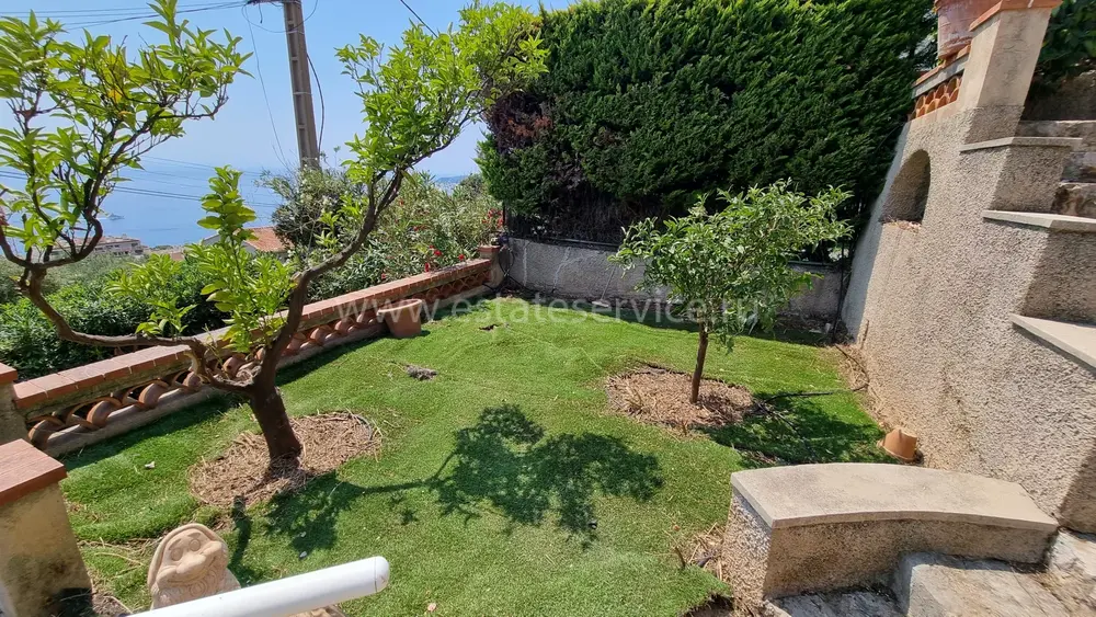 Атмосферный дом с прямым видом на море поблизости от центра Кап д'Ай. Получено разрешение на расширение и строительство гаража на две машины. Планировка после реконструкции: на верхнем этаже гостиная 15.8 m², примыкающая столовая 10.3 m², отдельная кухня 7.2 m², спальня 11.6 m² с душевой комнатой и гостевой туалет. На уровне сада две спальни 10 и 14.3 m² с выходом на террасу, две душевые комнаты, туалет и гардеробная. Аккуратный участок 300 m² с ухоженным садиком.