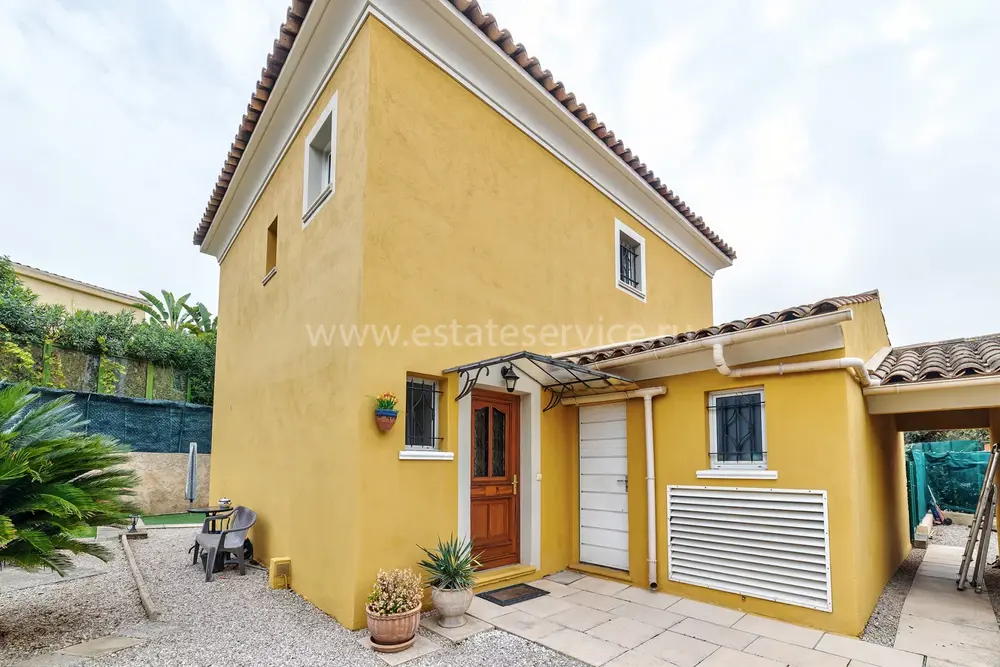 Элегантная вилла в престижной резиденции из 17 домов в пешей доступности (1.2 км - 10 мин) от пляжей и магазинов. Общая площадь 144 m² (жилая 90 m²) - просторная гостиная 38.5 m² с кухней и выходом на южную террасу, три спальни 9.6, 9.7 и 11.7 m² наверху, ванная и душевая комната с туалетами, отдельный санузел, функциональный (используется под кинозал/игровую) подвал 31.3 m² с кладовой и гараж 18 m². Отличное состояние, кондиционеры во всех комнатах, ухоженный сад 300 m², парковка для второй машины. Коммунальные платежи 50 €, годовой налог 1.433 €. Сделано предложение!