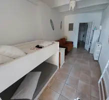 Нетипичная квартира выходящая на знаменитый пляж Sablettes. Общая площадь 51 m² (жилая 49.2 m²), на первом уровне прихожая 3.9 m² со шкафом, спальня 13 m² и душевая с туалетом, далее - гостиная 17.6 m² с панорамным балкончиком 1.7 m² (помещается столик/два стула), ниже разместилась (подвальный уровень) ещё одна спальня 10.5 m² и вторая душевая с туалетом. Коммунальные платежи 48 €, годовой налог 451 €.