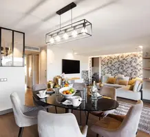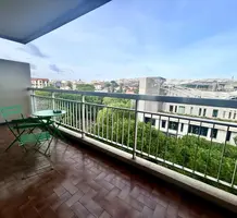 Со вкусом отремонтированная квартира на седьмом этаже здания рядом с Palais des Congrès. Жилая площадь 83.5 m² - прихожая, гостиная с открытой кухней и террасой, главная спальня со второй террасой и прилегающей ванной/туалетом, вторая спальня с встроенным шкафом балкончиком, душевая и отдельный туалет. Всего в двух минутах ходьбы от моря, включены закрытый гараж и кладовая, можно оставить мебель.