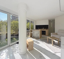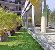 Студия-лофт с новым ремонтом в безопасном кондоминиуме с консьержем, парковой зоной и бассейном недалеко от моря. Жилая площадь 27 m² - просторная гостиная с новой островной кухней и выходом на террасу и в сад, стильная душевая с туалетом. Хорошая отделка, есть кладовая, можно припарковать авто. Коммунальные платежи 240 € включая электричество, отопление и воду, годовой налог 900 €.