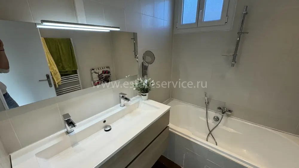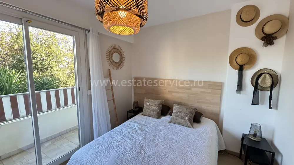 Просторная угловая квартира в ухоженной закрытой резиденции с прокатом велосипедов в десяти минутах от моря. Общая площадь 72.3 m² - прихожая 5.7 m², гостиная 22.4 m² с кухней и выходом на террасу, три спальни 6.6, 9.7 и 10.1 m² с балконом, ванная комната с душем и ванной, отдельный санузел и подсобка/прачечная. Отменное состояние, реверсивный кондиционер во всех комнатах, электрические рольставни, бронированная дверь, частный паркинг. Коммунальные платежи 150 €, годовой налог 1.100 €.
