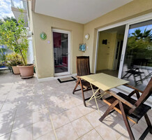 Уютные апартаменты в закрытом кондоминиуме с парковой зоной, игровой площадкой, бассейном, рестораном, видеонаблюдением и удобным выходом к морю. Жилая площадь квартиры 48 m² - прихожая, светлая гостиная с отдельной кухней выходят на большую террасу 35 m² и ухоженный сад 20 m², спальня, ванная комната с душевой и туалет. Крайне приличное состояние, включены закрытый гараж 12.8 m² и кладовая. Коммунальные платежи 180 €, годовой налог 1.023 €.
