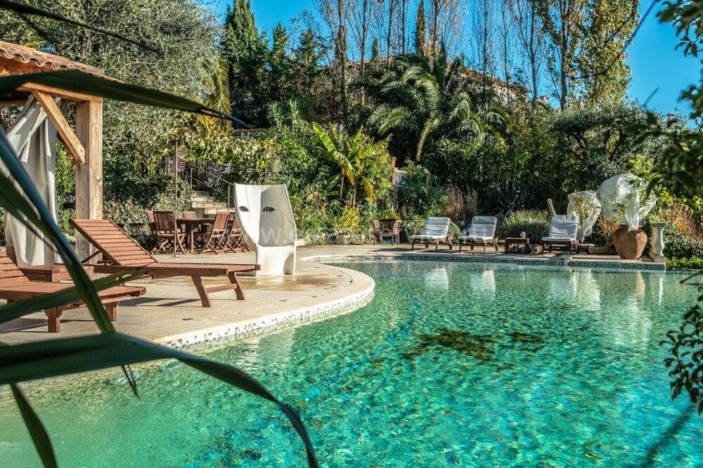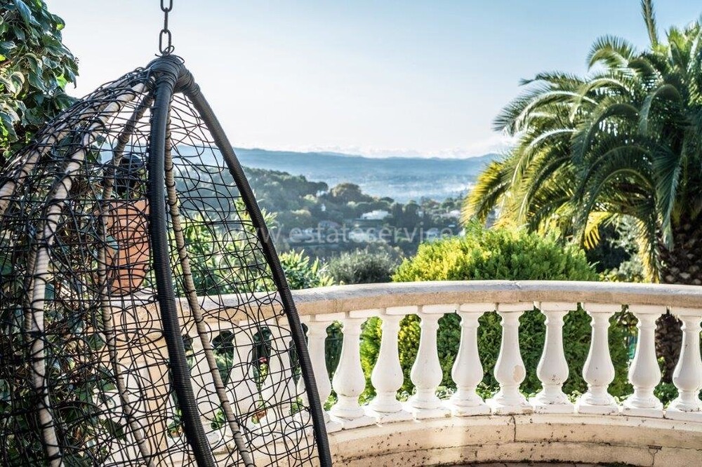 Вилла c потрясающей панорамой на Бухту Ангелов и Кап Д'Aнтиб. Общая площадь 270 m², в главное доме - прихожая, светлая гостиная с камином, столовая с открытой кухней и большая спальня с ванной комнатой, далее разместились четыре уютные спальни делящие две душевые комнаты и отдельный туалет, наверху - шестая спальня с ванной комнатой и гардеробной. На пышном участке 2.137 m² много зелени, бассейн (придётся обновить) с подогревом и беседкой, гостевой домик 47, студия 17 m² и гараж на две машины. Возможность разделения участка под строительство или снос-реконструкция в современную виллу (общая площадь 500 m² включая подвал) - хороший потенциал: предполагаемая стоимость работ 2.5 млн €, прогнозируемая цена после завершения 6.5 - 7 млн €. Подробности под запрос!