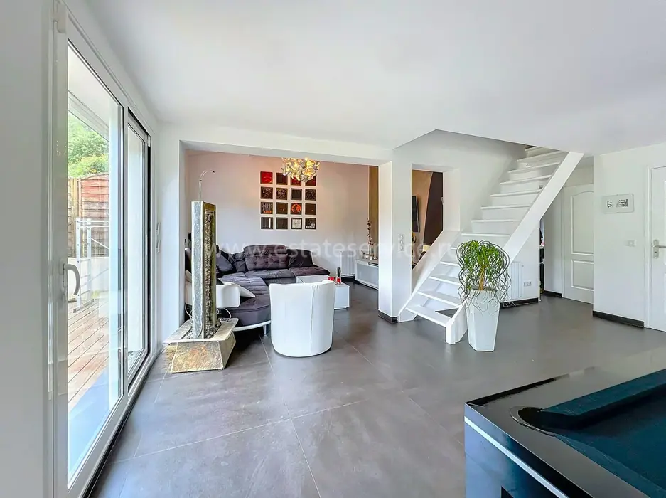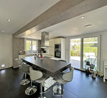 Стильная вилла с удобным расположением поблизости от магазинов, школы и основной инфраструктуры. Площадь дома 163 m², на двух уровнях разместились светлая и просторная гостиная 60 m² с островной кухней, выходом на террасу 30 m², веранду 17 m² и в сад, четыре спальни, главная наверху со своей ванной комнатой (ванная + душ + туалет) и большой гардеробной, душевая и прачечная/подсобка. На ландшафтном участке 1.291 m² много зелени, большой бассейн с подогревом, два сарайчика, беседка и шесть парковочных мест. Годовой налог 922 €.