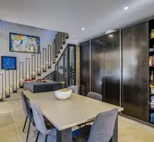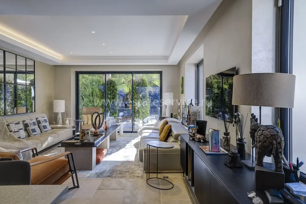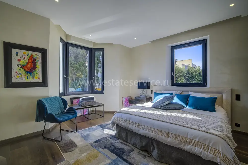 Полностью отреставрированная вилла в 10-ти минутах от улицы Антиб и 300-х метрах от моря, сектор между Pointe Croisette и Basse Californie. Жилая площадь 216 m², на ландшафтном участке 913 m² красивый сад с автополивом, летняя кухня с барбекю, гостевой домик/апартаменты 36 m² со своей кухней, красивый бассейн и навес для двух автомобилей. В доме - уютная гостиная с обеденной зоной и островной кухней, комната TV/для приема гостей, гостевой туалет и винный погреб. На втором этаже по шикарной лестнице разместились три большие спальни 12.5, 17 и 22 m² с ванными/душевыми комнатами. Установлены кондиционеры домашняя автоматизация, электрические жалюзи, наружное освещение, оптоволокно, сигнализация, электрические ворота, видеофон и прочие удобства.
