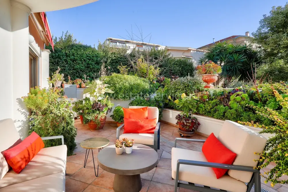 Уютные апартаменты на первом приподнятом этаже безопасной закрытой резиденции с шикарным садом в тихом престижном районе. Общая площадь 153 m² (жилая 74.2 m²) - прихожая, светлая гостиная 27.6 m², отдельная кухня, две спальни со шкафами - все комнаты с доступом на широкую террасу 63 m², мраморная ванная и отдельный санузел . Отменное состояние, высокие потолки, включены кладовая и подземный паркинг - идеальный компромисс между квартирой и домом в центре города - 2.5 километра от набережной и моря. Коммунальные платежи 324 €, годовой налог 2.357 €.