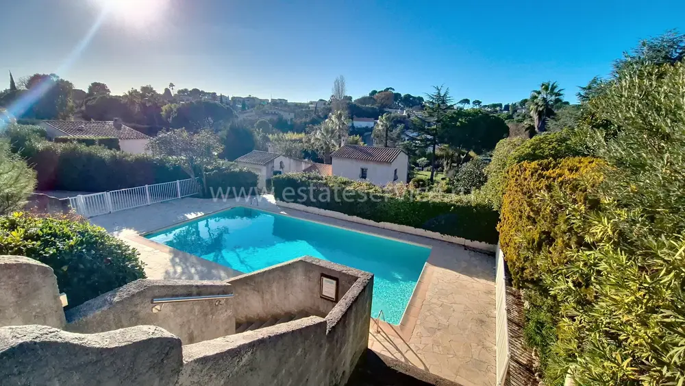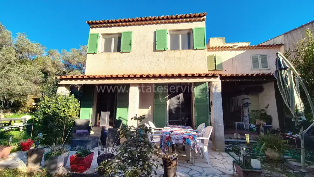 Смежная вилла в безопасном домене с зелёной зоной и бассейном в трёх километрах от моря. Общая площадь 171 m² (жилая 108 m²), ровный участок 400 m² с садом и гаражом 15 m². В доме - прихожая с гостевым туалетом и умывальником, гостиная-столовая с камином и выходом на террасу, отдельная кухня, четыре спальни, гардеробная, ванная комната, душевая и санузел. Коммунальные платежи 135 €, годовой налог 1.400 €.