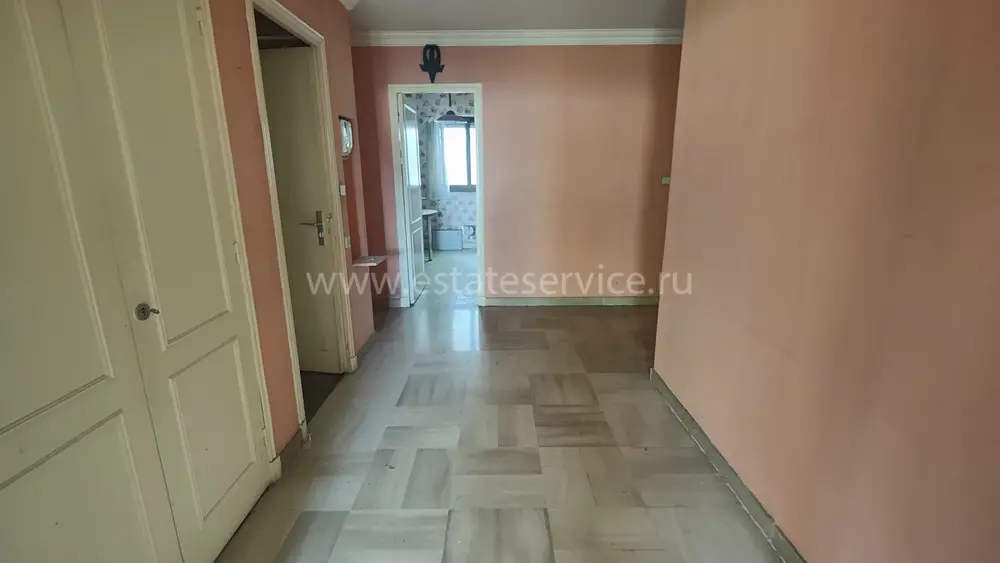 Апартаменты на 3-м этаже закрытого кондоминиума с лесопарком в тихом престижном районе в 2.5 км от моря. Общая площадь 97.7 m² (жилая 92.6 m²) - прихожая 13 m², двойная гостиная 33 m² с террасой 5.1 m², отдельная кухня 7.3 m², две тихие спальни 9.6 и 11.8 m², ванная комната, две гардеробные и два туалета. Хороший потенциал, есть кладовая и паркинг для скутера, можно купить гараж 41.000 €. Коммунальные платежи 134 €.