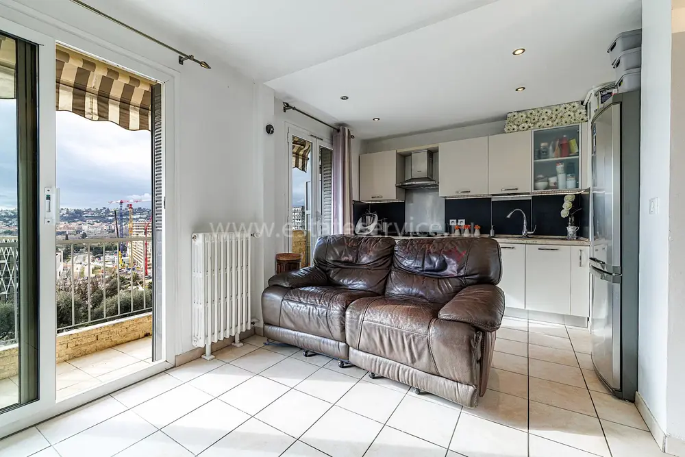 Апартаменты на втором этаже резиденции в западной части Ниццы - проспект Сент-Маргерит. Общая площадь квартиры 63.8 m² (жилая 57.5 m²) - прихожая 8.5 m², гостиная 23.5 m² с открытой кухней и балконом 6.3 m² на юго-восток, две спальни 9 и 11.1 m², душевая комната и отдельный туалет. Приличное состояние, рядом магазины, медицинские учреждения, транспорт (автобус + трамвай) и школа, можно купить гараж 27.000 €. Коммунальные платежи 211 €.