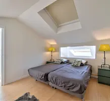 Двухуровневая квартира на верхнем этаже здания в двух шагах от Place Massena и пешеходной зоны - ул. Жиофредо. Общая площадь 130 m² (жилая 108 m²) - прихожая 7.7 m², гостиная с высокими потолками, открытой кухней и выходом на террасу 22 m² с жалюзи, главная спальня 19 m² со встроенным шкафом, кондиционером и прилегающей ванной комнатой, ещё две спальни 4.3 и 11.9 m² наверху, холл 9 m², ванная комната с туалетом и душевой кабиной, а также гостевой туалет. Идеальное состояние и удобное расположение в самом центре Ниццы, всего 250 метров от моря! Коммунальные платежи 300 €.