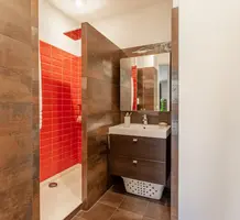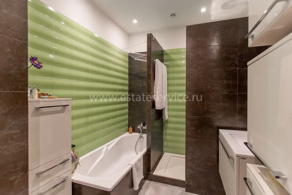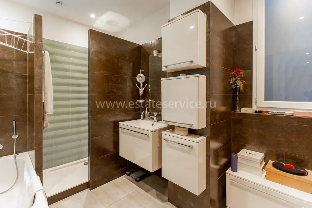 Апартаменты с изысканной отделкой на шестом (предпоследнем) этаже буржуазного дома с лифтом. Жилая площадь 115 m² - прихожая 11.3 m², гостиная 37.7 m² с островной кухней и двумя балконами 5.4 m², три спальни 7.3, 14 и 22 m², две душевые и отдельный туалет. Коммунальные платежи 302 €, годовой налог 1.978 €.