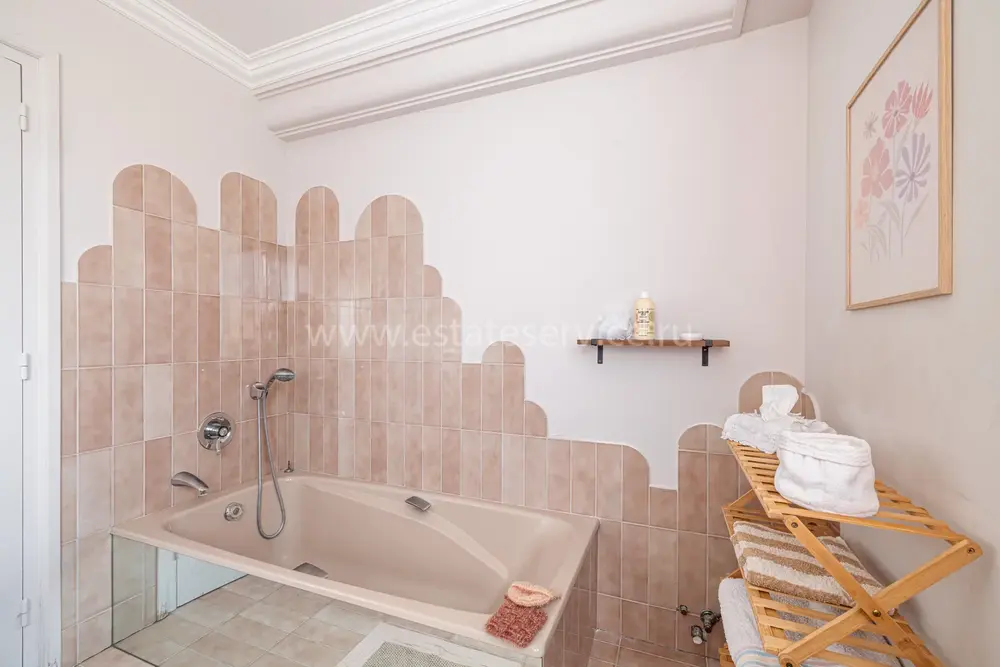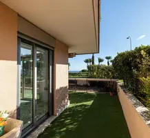 Уютная квартира в безопасном кондоминиуме с садом, бассейном и видеонаблюдением в 2.5 км (напротив автобусная остановка) от моря. Общая площадь 174 m² (жилая 100 m²) - прихожая 5.8 m² с кладовой, двойная гостиная-столовая 42 m² с панорамной террасой 49 m² по периметру квартиры, отдельная кухня 8.8 m² выходящая на крытую лоджию 25 m², две спальни 9.6 и 13.4 m², ванная комната 6 m² с ванной, душевая и отдельный туалет. Потребуется обновить, можно добавить третью (ранее была вместо столовой) спальню, продаётся с гаражом и кладовой, можно докупить второй гараж. Коммунальные платежи 411 €, годовой налог 2.509 €.