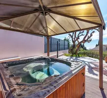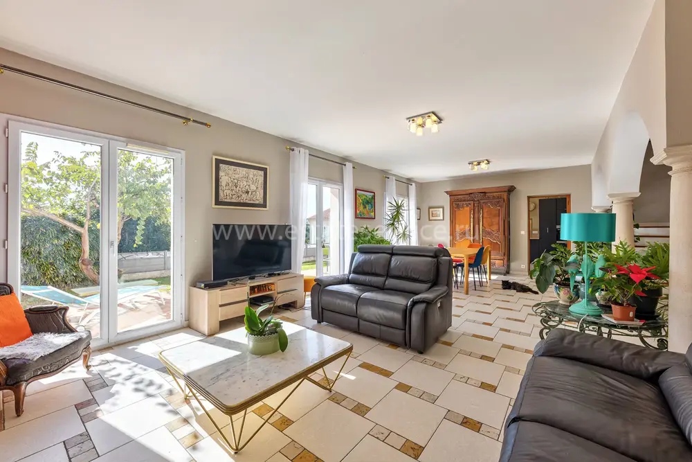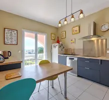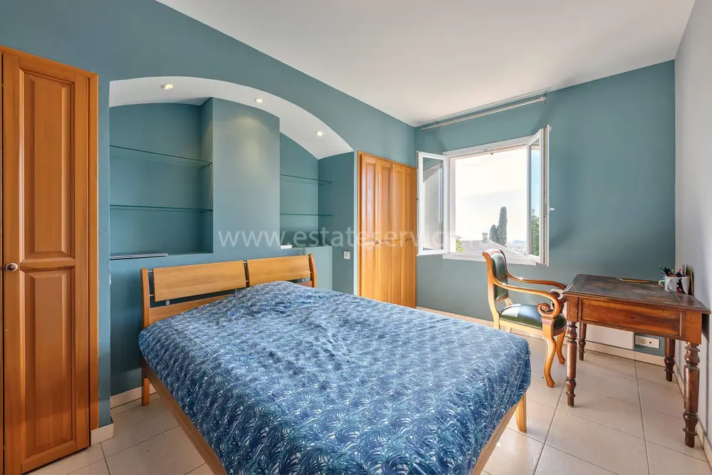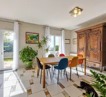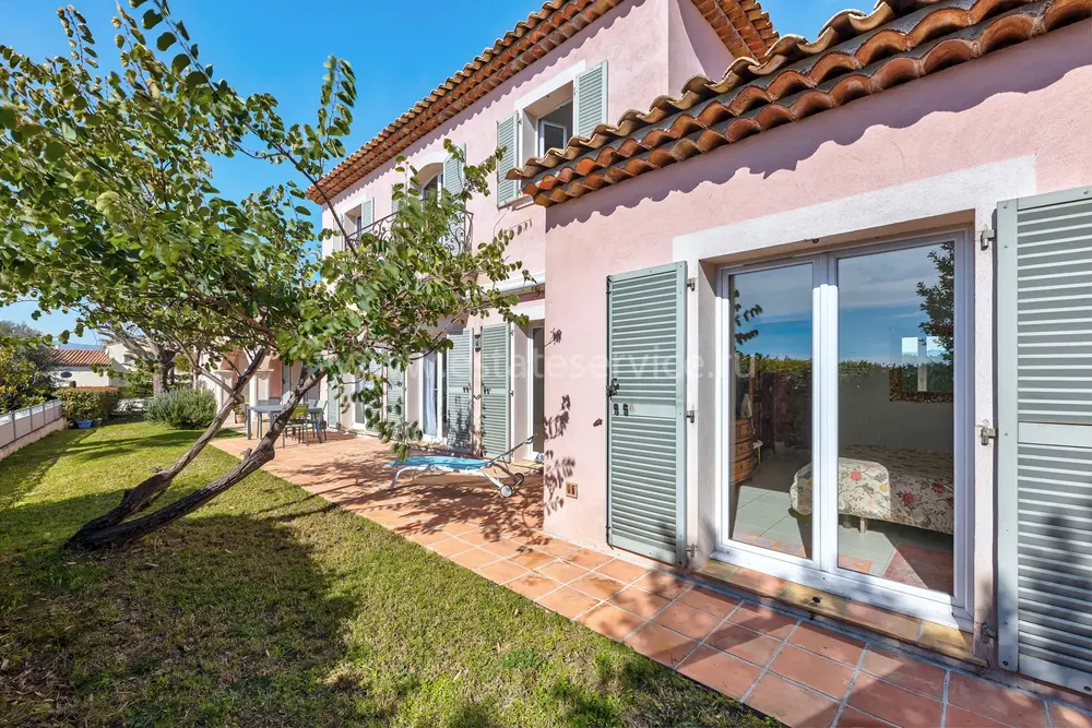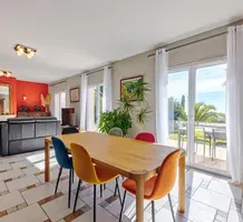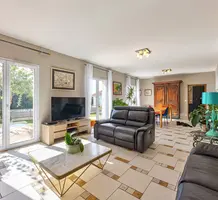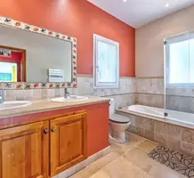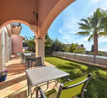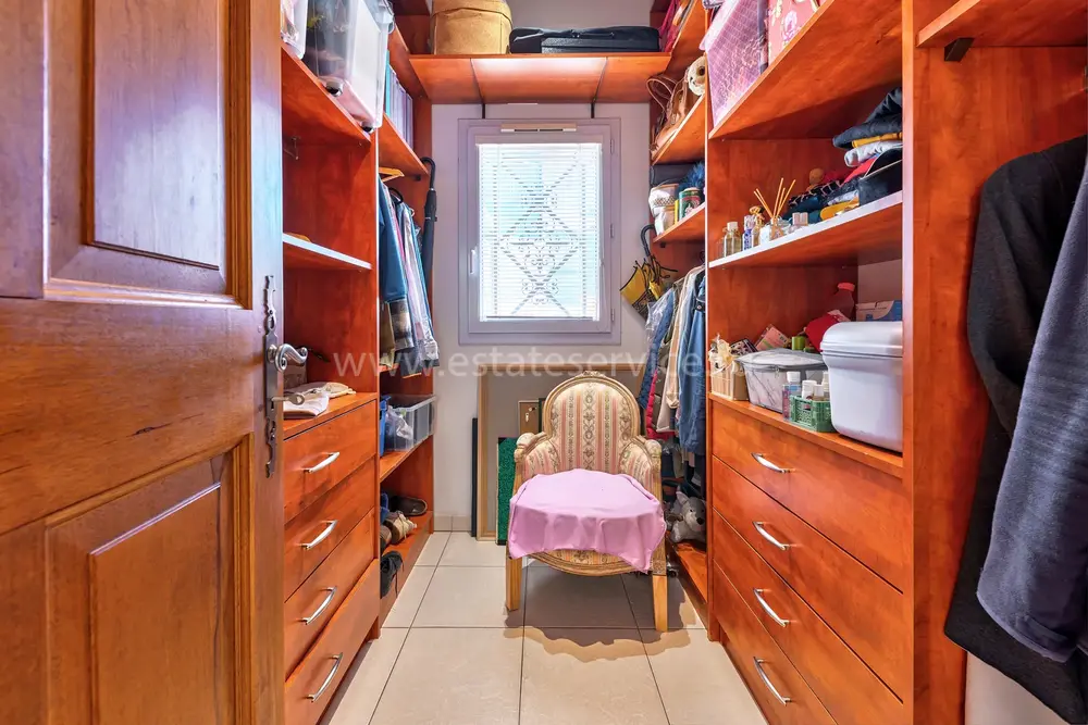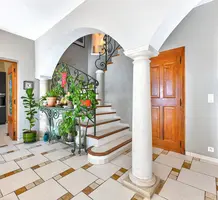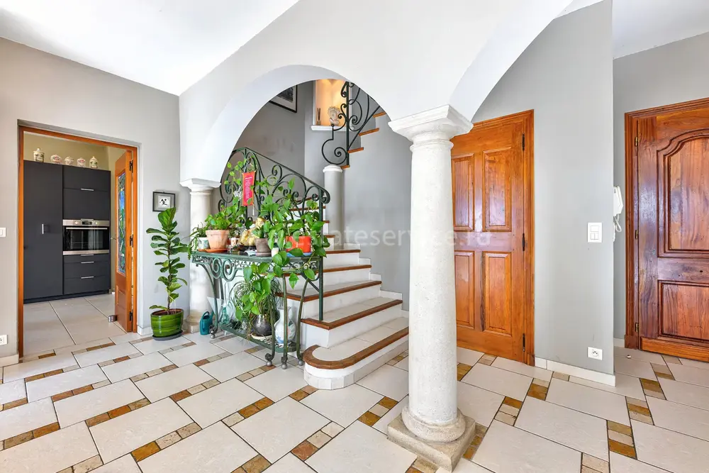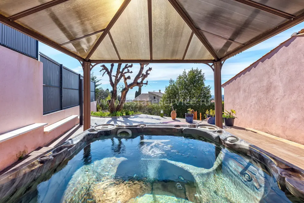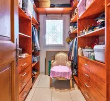 Ухоженная вилла 2005 года постройки в тихом популярном районе Ле-Колетт. Жилая площадь 196 m² + гараж на две машины, на участке 1.020 m² пышный ландшафтный сад, крытое джакузи. На первом этаже прихожая, гостиная, столовая, кухня, спальня, кабинет, ванная комната с туалетом, кладовая и санузел. Наверху - ещё три спальни, одна с балконом, игровая комната, ванная и отдельный туалет. Годовой налог 2.009 €.