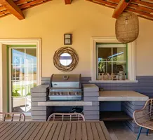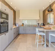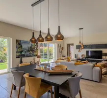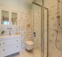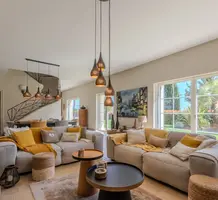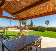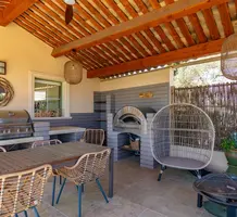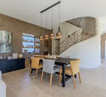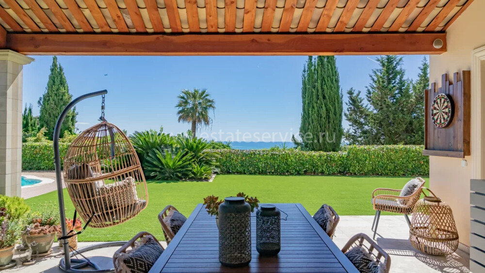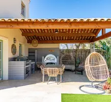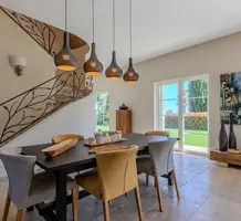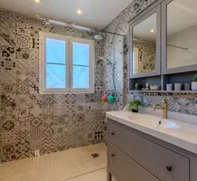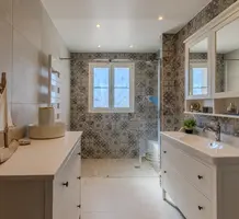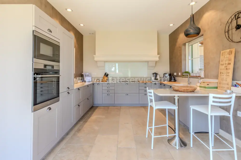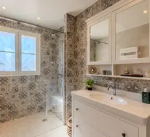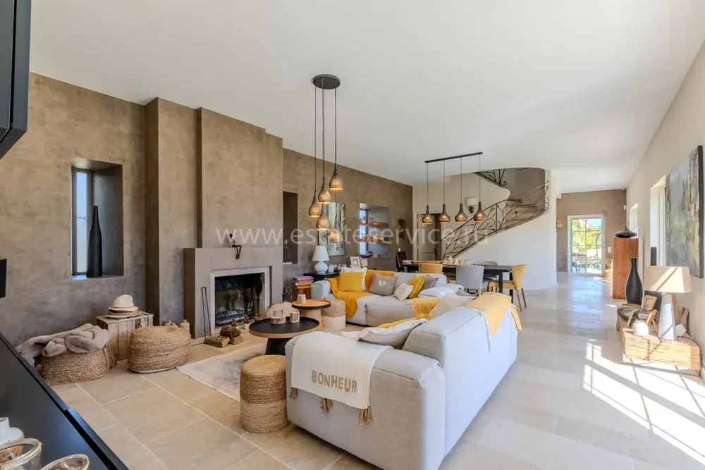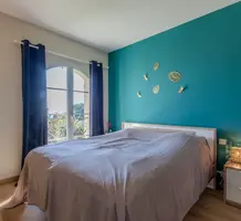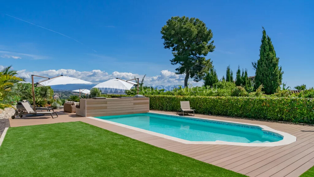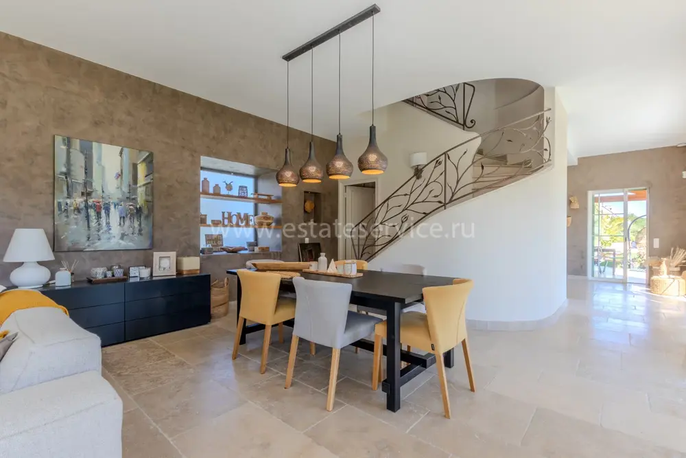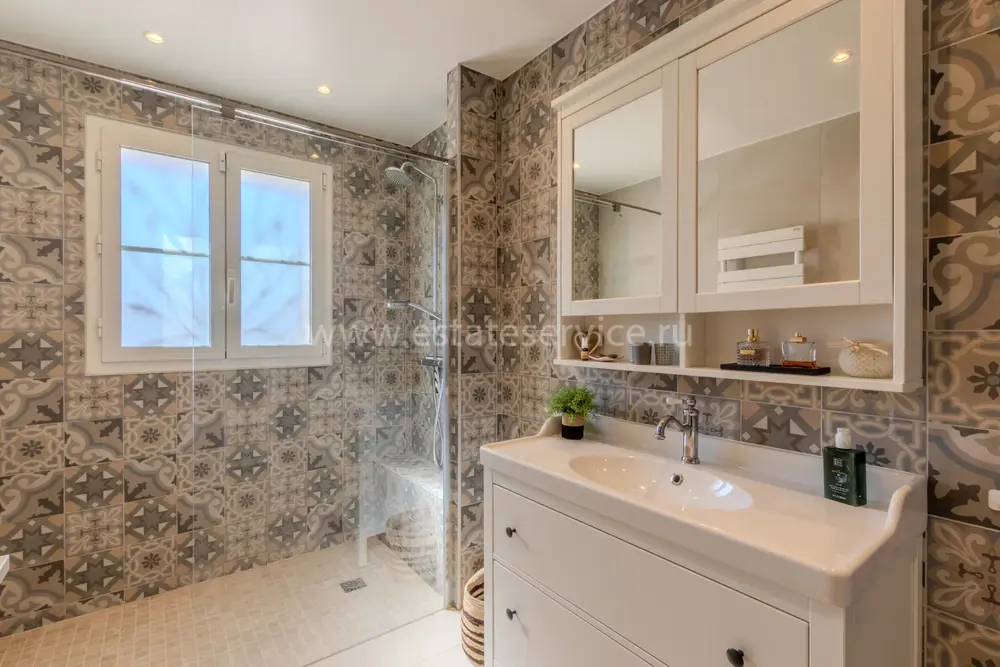 Полностью отремонтированная вилла с тихим и удобным расположением в пяти минутах от моря. Общая площадь дома 200 m², на участке 1.600 m² ухоженный фруктовый сад с автоматическим поливом, видом на море и горы, закрываемый бассейн с подогревом, площадка для игры в петанк, гараж 25 m² и открытая парковка. На первом этаже прихожая с туалетом, просторная гостиная с камином, столовая, отдельная кухня выходящая в сад, большая спальня с гардеробной и ванной комнатой, прачечная со стиральной машиной и сушилкой. Наверху - коридор, ведущий к трем спальням, главная с душевой и панорамной террасой, общая душевая комната, балкон и отдельный туалет. В подвале 30 m² - котельная и две комнаты свободного назначения. Годовой налог 3.190 €.